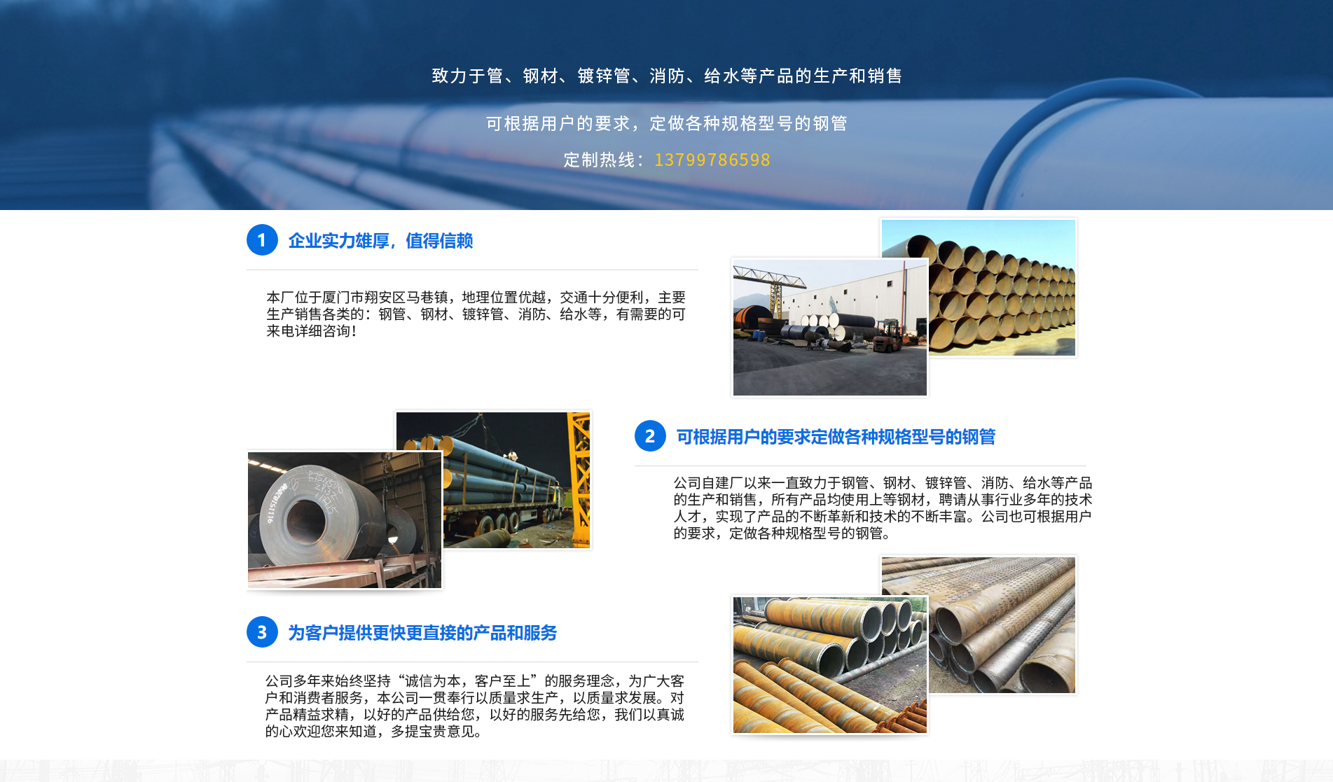 廈門方圓澤金屬材料有限公司主要生產(chǎn)銷售各類銀澤的:鋼管、鋼材、鍍鋅管、消防、給水等,產(chǎn)品被廣泛應用于天然氣、石油、化工、電力、熱力管網(wǎng)、水源等長距離輸送管道等,公司建立起了產(chǎn)品售前、售后服務規(guī)范,全過程滿足顧客要求,使我們的產(chǎn)品和服務深得顧客的信賴,與顧客建立起了長期合作互利關(guān)系。